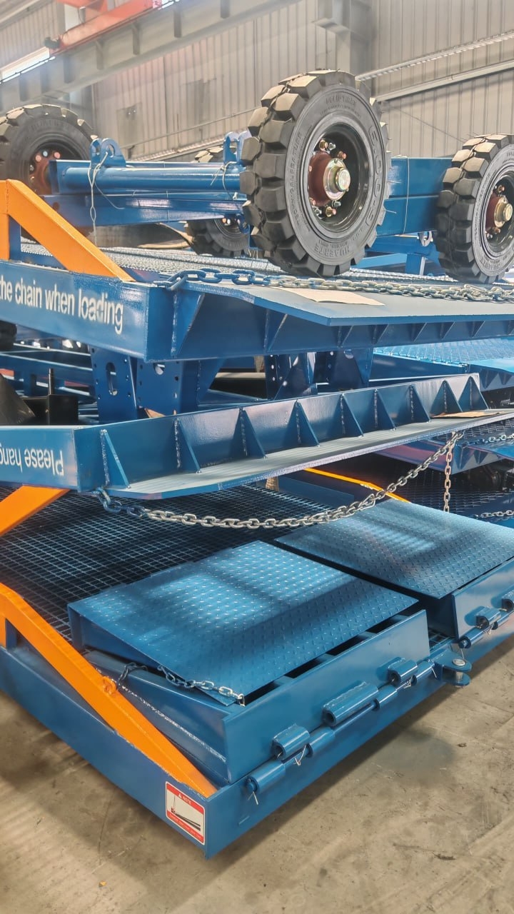 Дополнительное оборудование (входит в комплект поставки): крепление для перемещения эстакады погрузчиком, противооткатные башмаки, рычаг для гидравлики, цепи (для фиксации платформы к грузовику).
